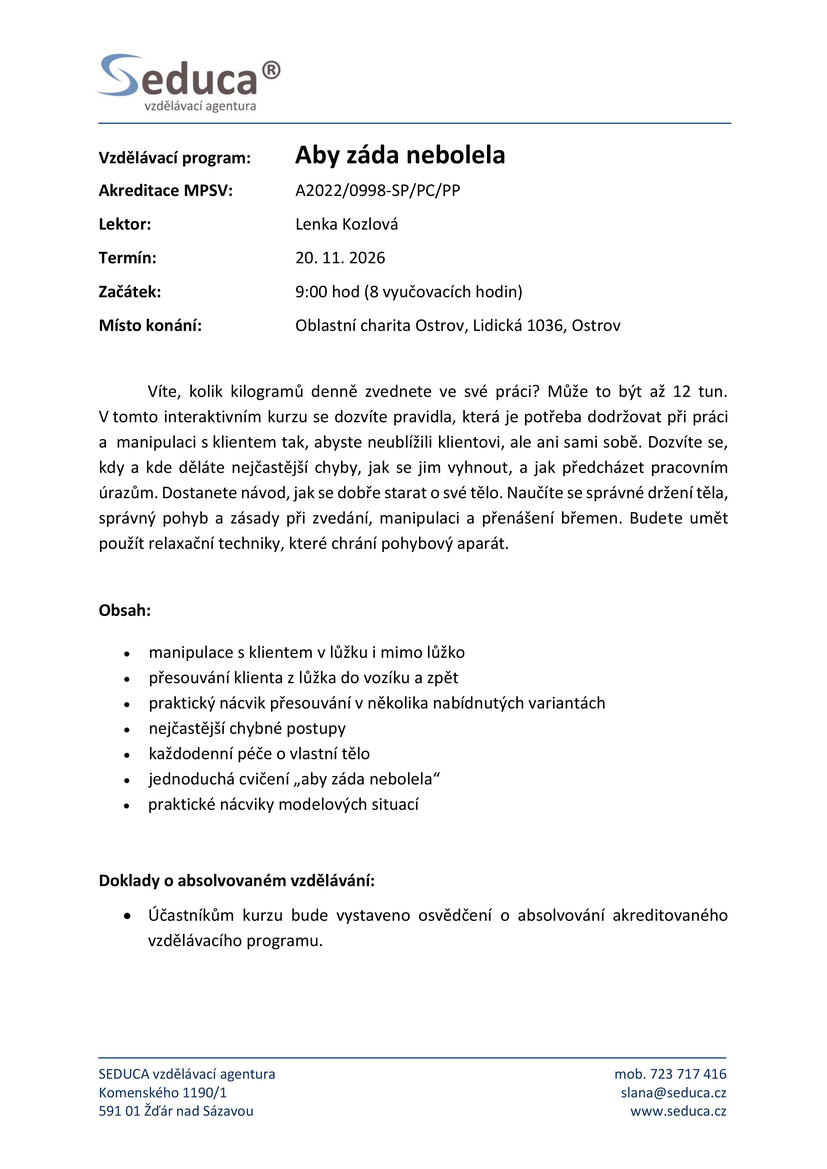 - Aby záda nebolela, který se bude konat 20. listopadu 2026